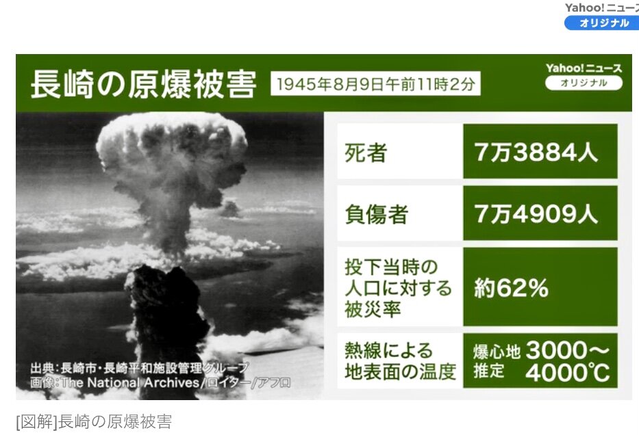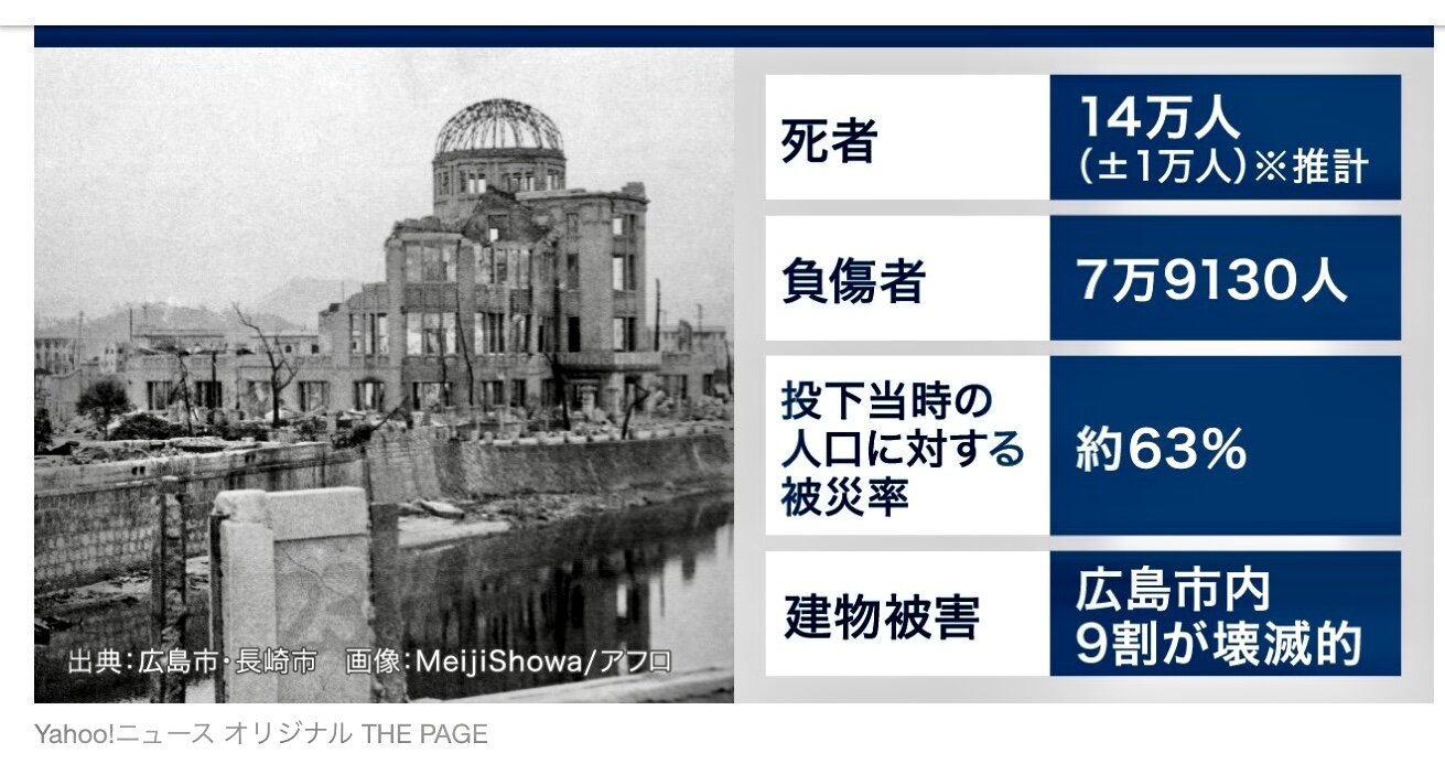 それによる死者は、広島14万人、長崎7万3884人とされています。(Yahooニュースより)