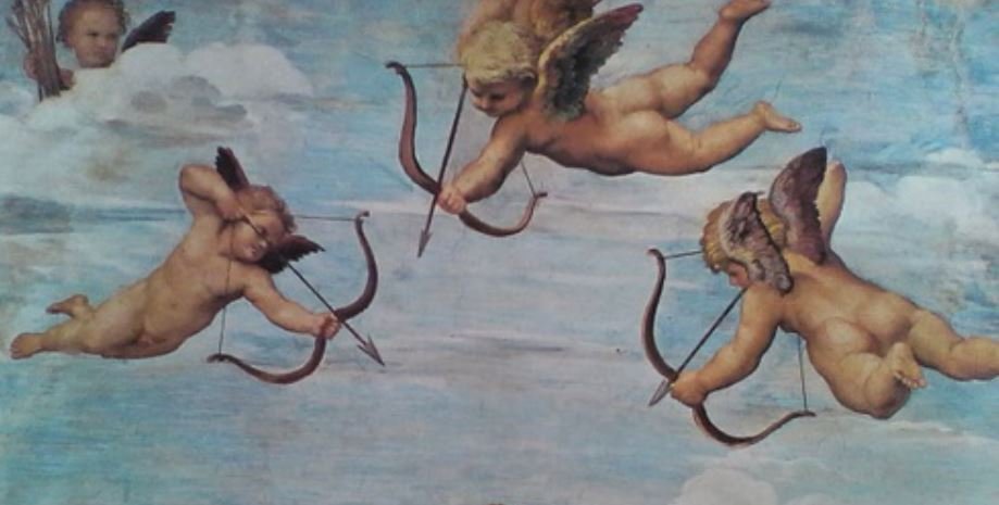 目隠しされた天使は相手かまわず矢を射るので、矢に触れた人は年齢性別立場関係なく恋に落ちてしまうというわけです。