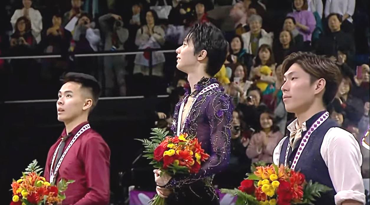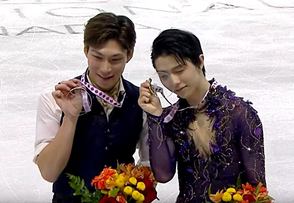 かつては同じリンクで練習していた結弦くんと一緒に表彰台に立ったことに感動していたのだと思います。
