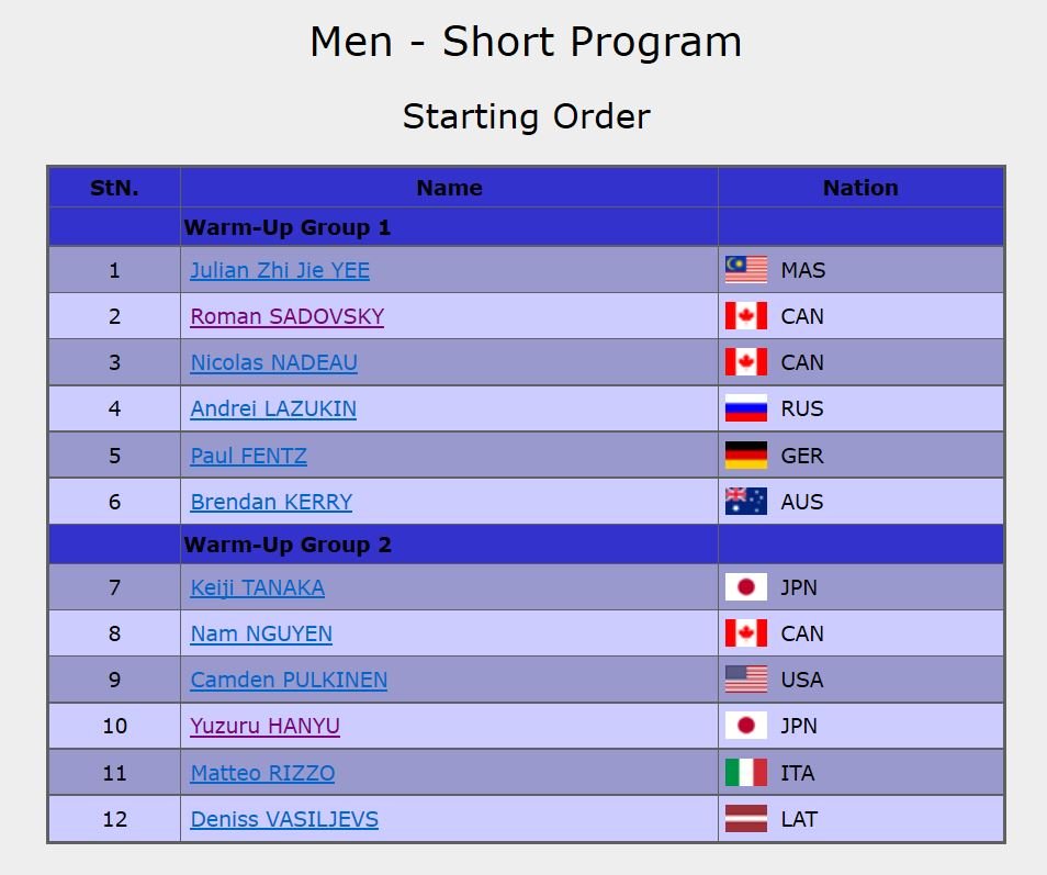 羽生選手は第2グループの1番目、田中選手は2番目。