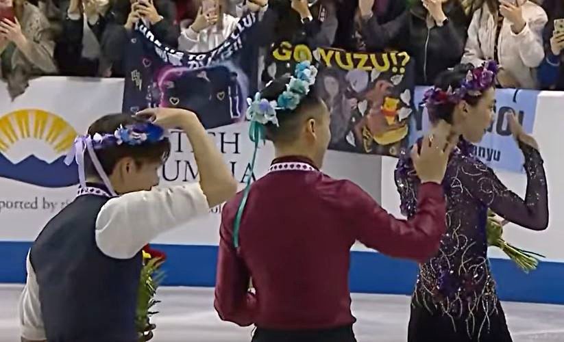 「天才的なスケーターです。ブラボー、ユヅル。ジェーニェンカ(プルシェンコ氏の愛称)。エドウィン・マートンの音楽に乗ったあなたのニジンスキーに捧ぐは感動的だった。そしてユヅルは素晴らしくあなたが方向性を与えたそのスタイルを続けている。あなたたちは2人とも天才だ」