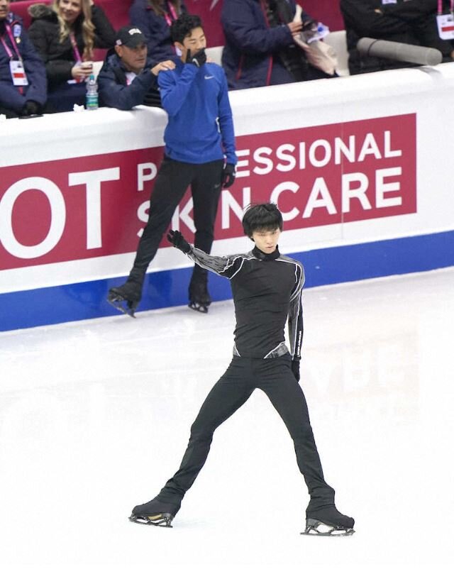 前日(18日)は夕方に帰国したため、午後3時15分開始の練習には参加せず、この日が全日本に向けての会場初練習。フリー「Origin」を流しての滑走では冒頭の4回転ループでバランスを崩し、他のジャンプでも回転が抜けるシーンが目立った。曲かけ終了後はループ、サルコー、トーループの4回転に加え、トリプルアクセルも鮮やかに決めるなど、ジャンプの修正に努めた。