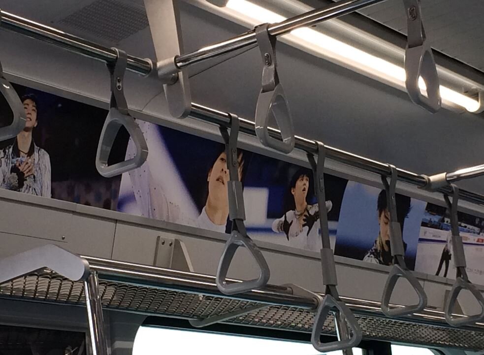 2015年の世界選手権の時に、田園都市線の電車が丸ごと羽生選手だったことがあり、