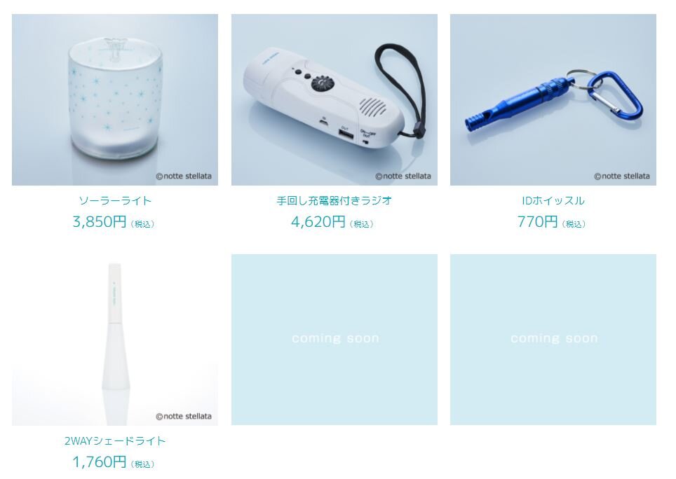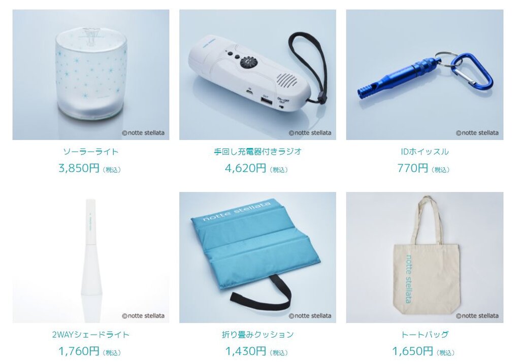 notte stellata の防災グッズはどれもグッドデザインであるところがとても良いですね。
