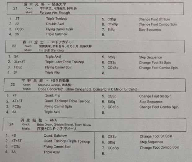 #羽生結弦 らの男子SP予定構成表 pic.twitter.com/D6FprENIyN