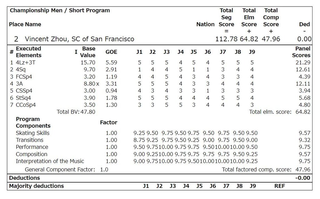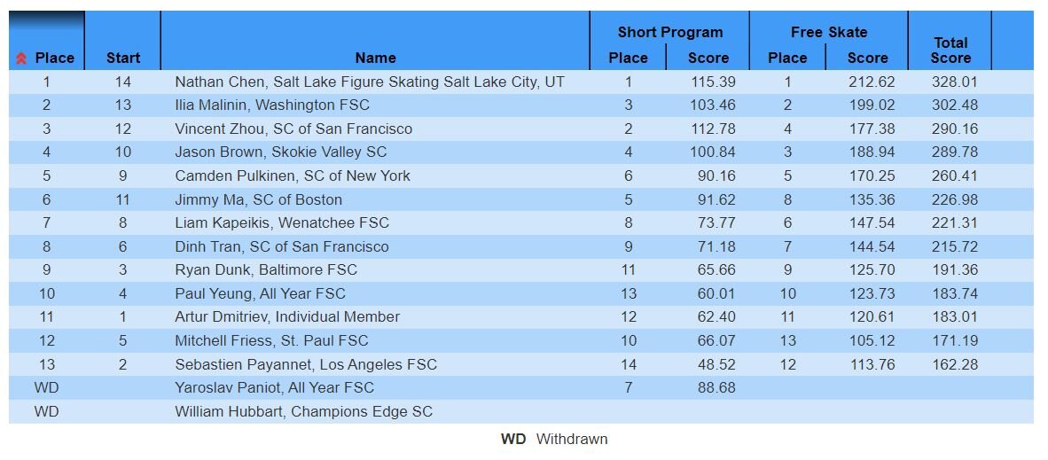 全米男子FS結果と動画