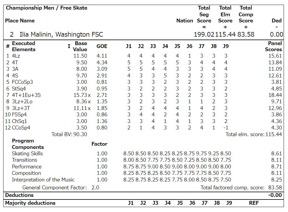 ノーミスのFSは199.02点、総合302.48点で、全米フィギュアデビュー戦を銀メダルで飾りました。
