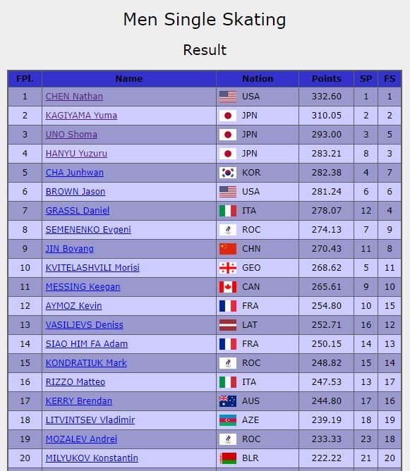 男子シングルFS結果