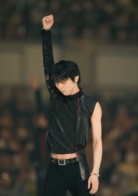 黒に赤のアクセント、そこに、結弦くんの白い肌が引き立つことこの上ない衣装です。