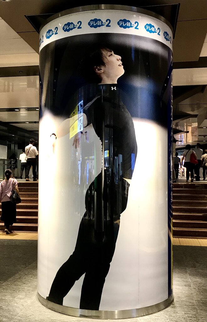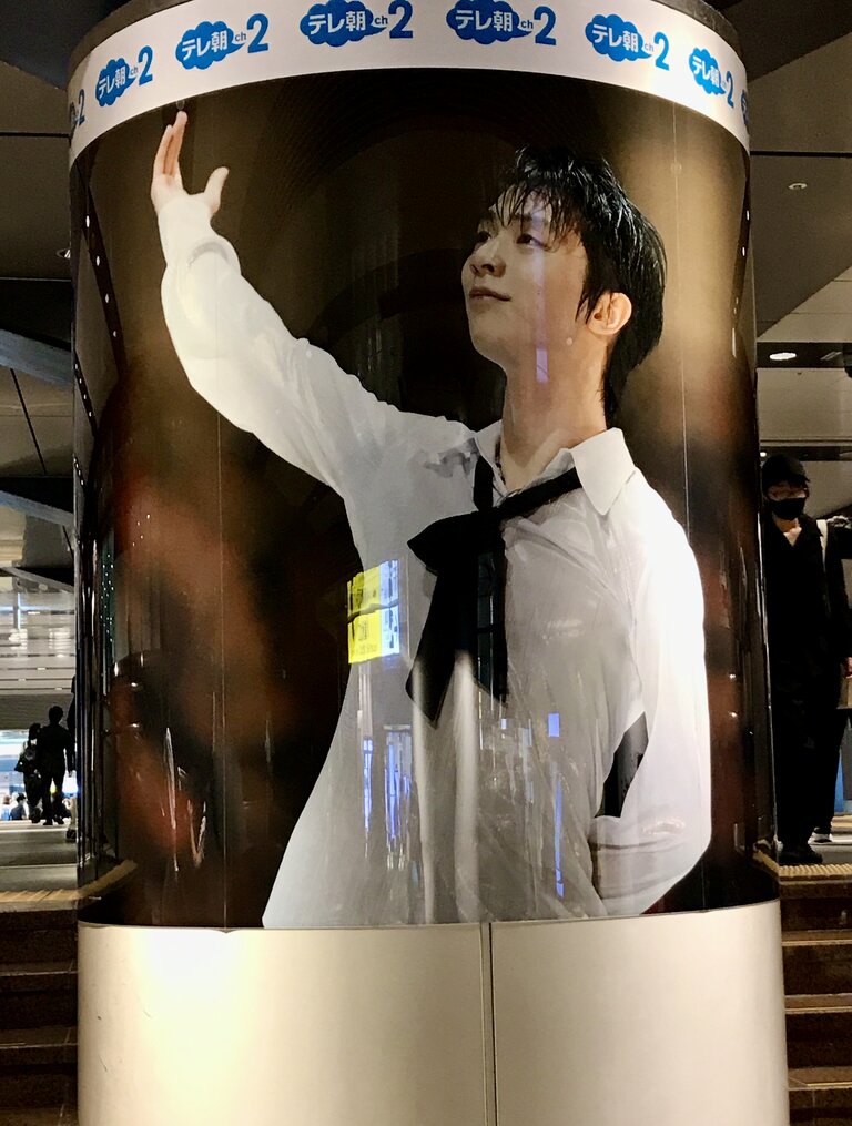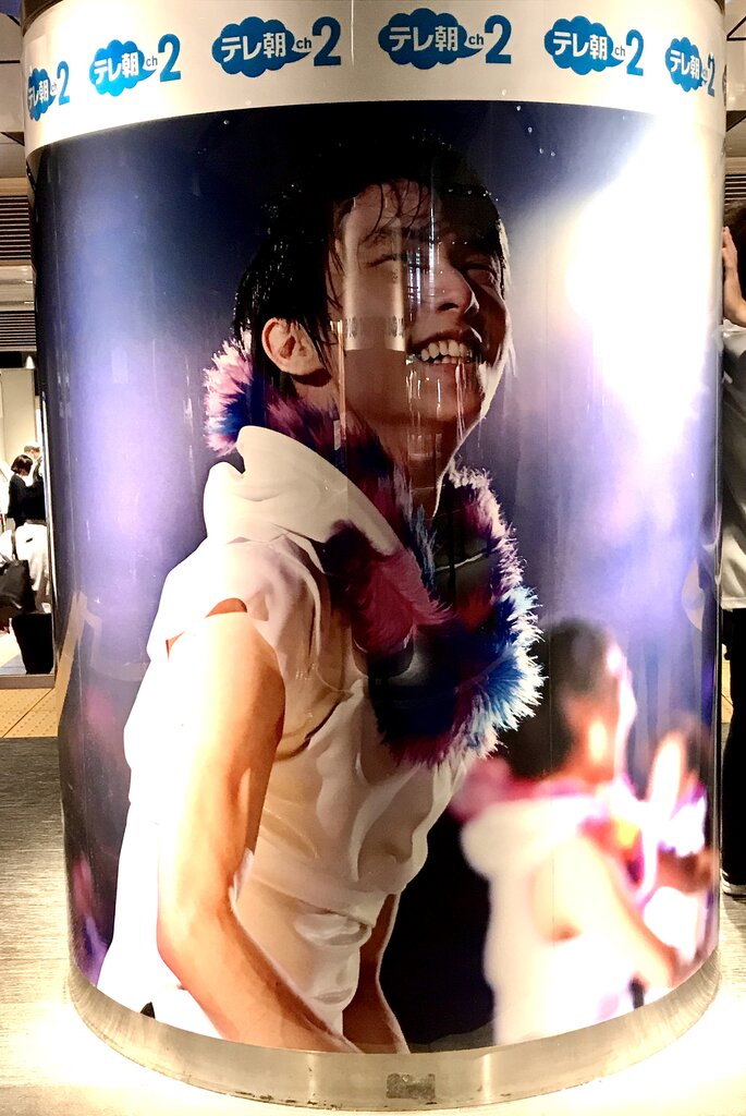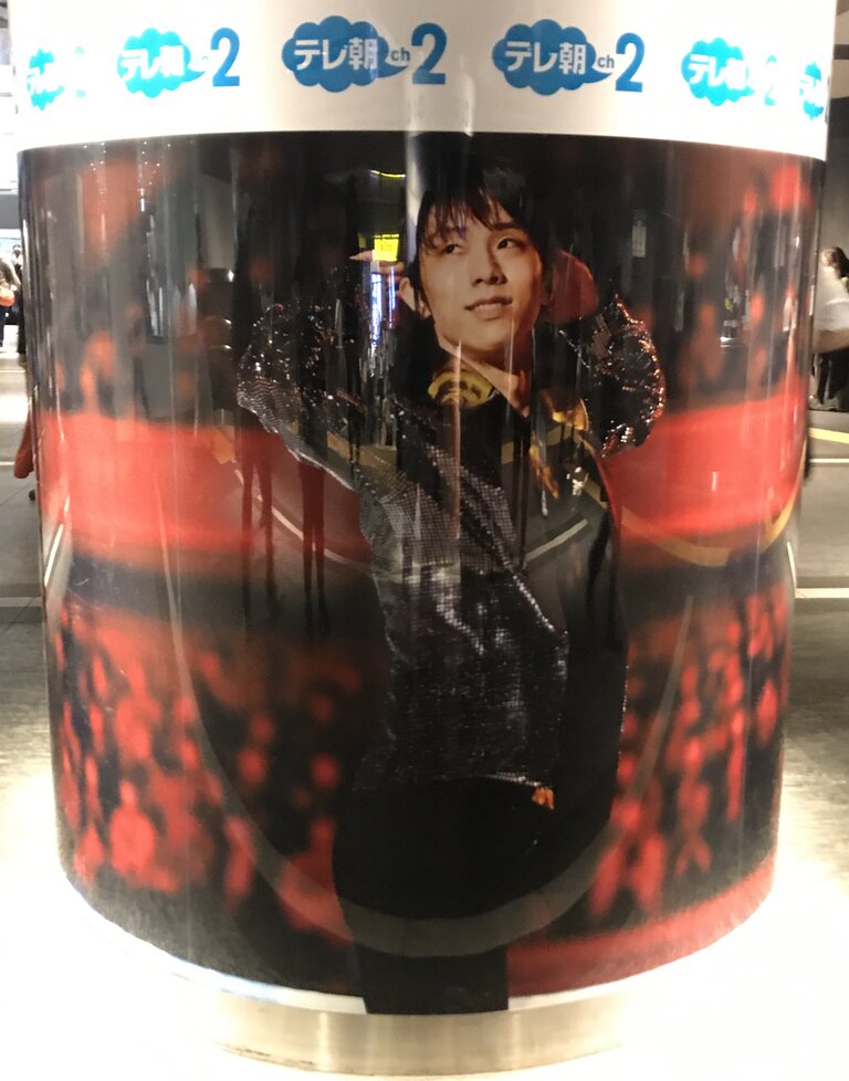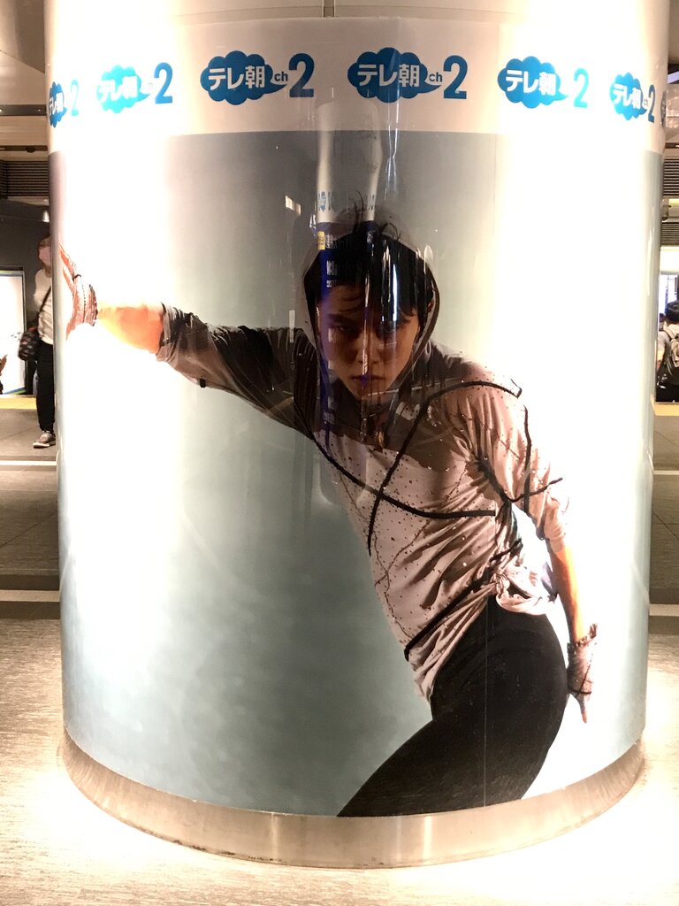 通勤客や旅行者が足早に行きかう中に、このような結弦くんの美ボディラインを投入して良いものなのかどうか・・・