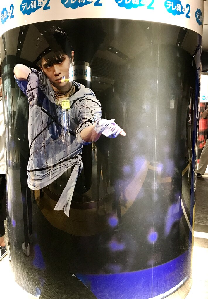 4本の円柱の両面に結弦くんの大型写真が現れます。