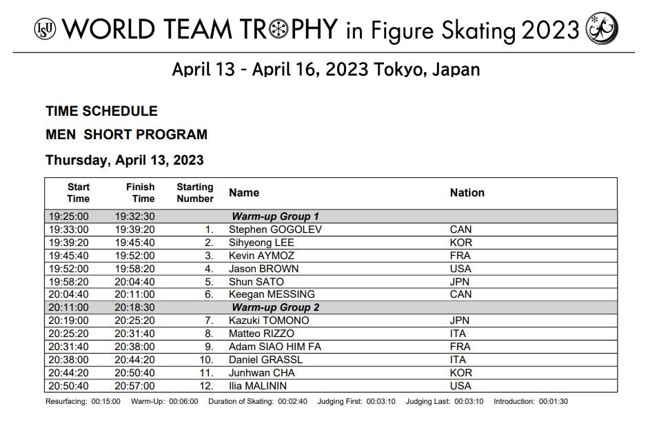 <今夜の男子SPのタイムスケジュール>