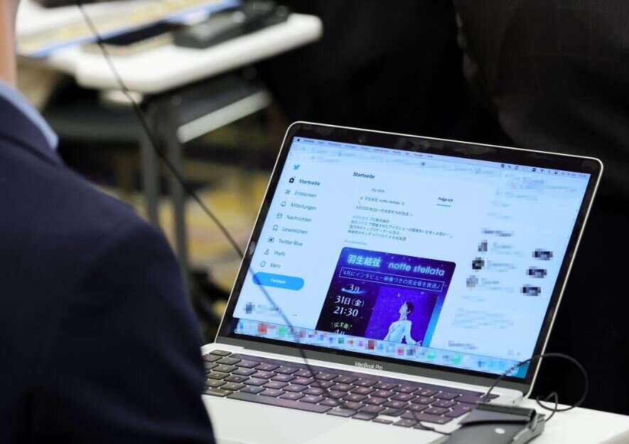 記者さんのPC画面がよく見えてしまうんです…。