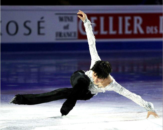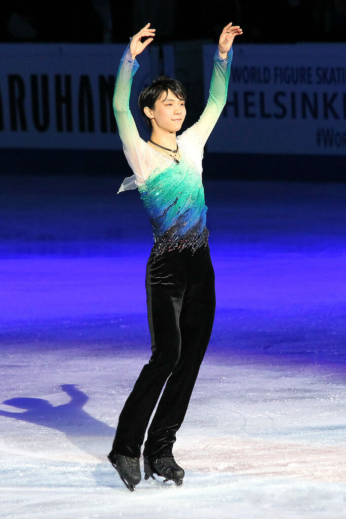 M:最初に滑るのは現オリンピックチャンピオン、羽生結弦だ