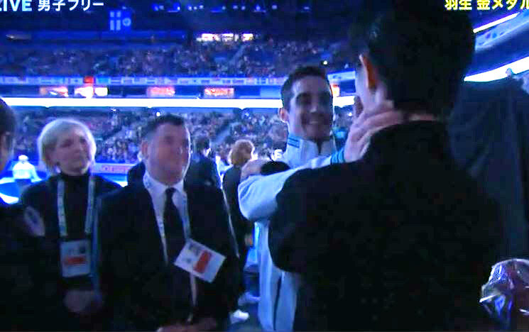 優勝決定後の場内インタビューに向かう前、リンクサイドの暗がりの中でのハビとのハグも感動的でした。