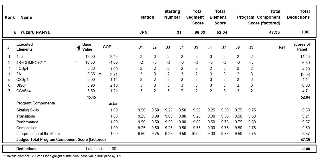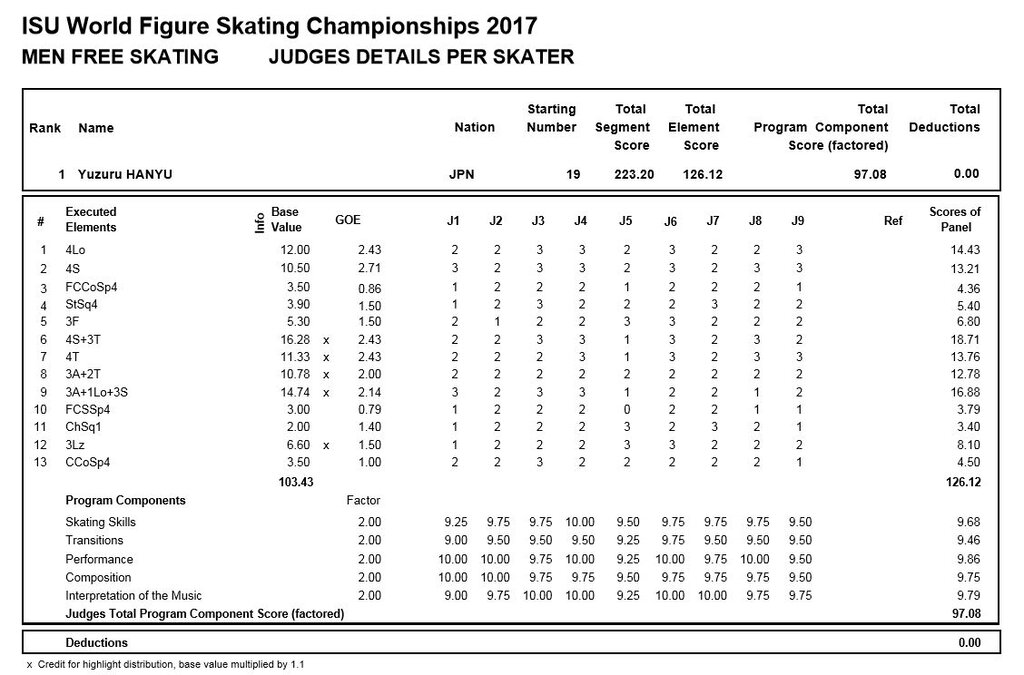その時は優勝と世界最高得点更新の喜びでかき消されていたのが、今改めてよく見ると信じられないくらい酷い評価です。