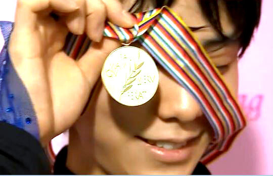 ピンクを背景に金メダルと戯れる羽生選手も可愛いかった!