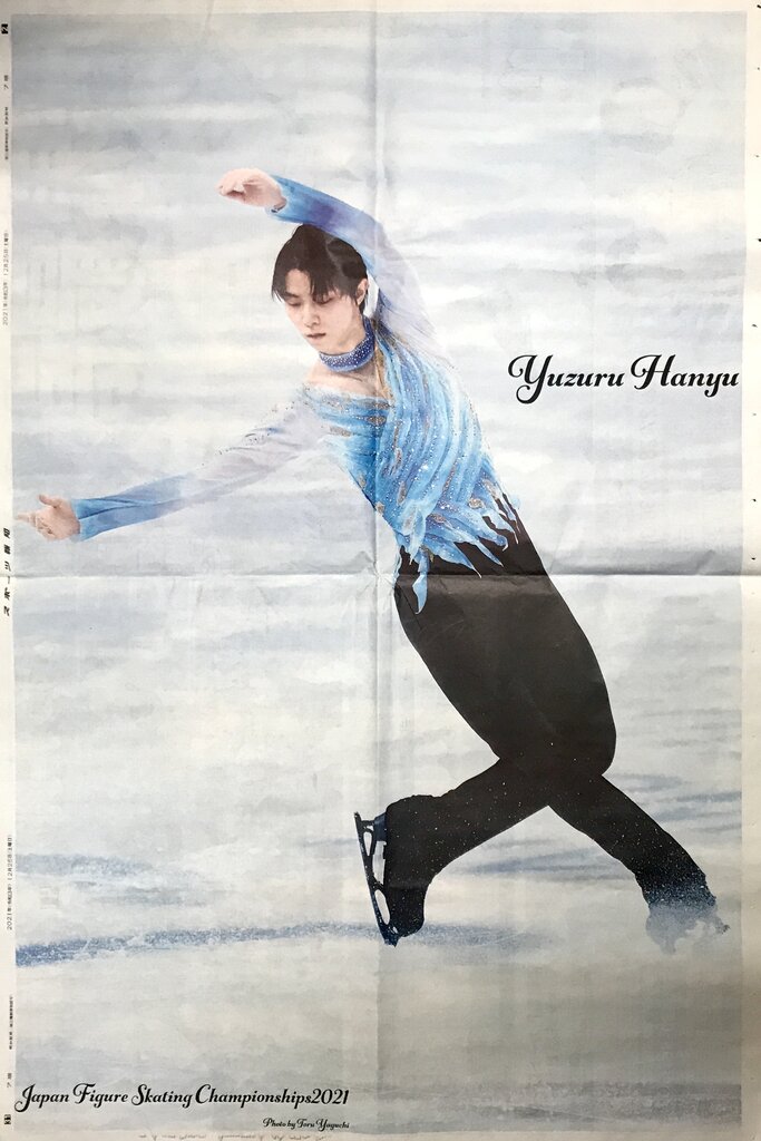 羽生選手が全日本出場とのニュースを受けて、今日の新聞に大きく取り上げられています。
