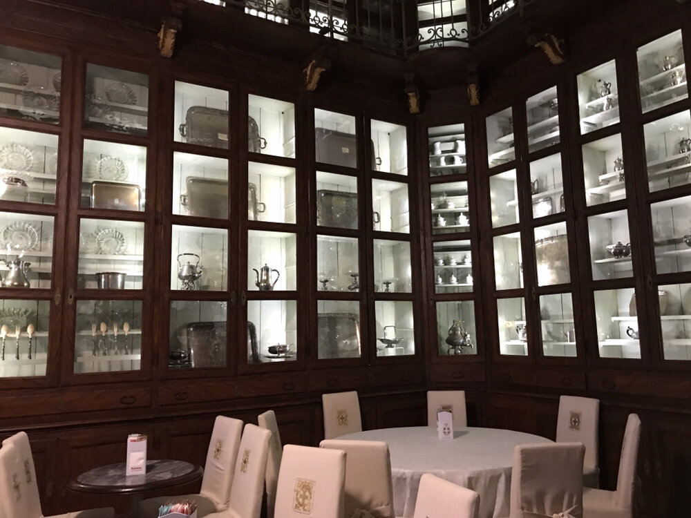 壁面は天井までガラスケースになっていて、17世紀からに王宮で使われていた食器やトレイ、調味料入れなどが飾られています。