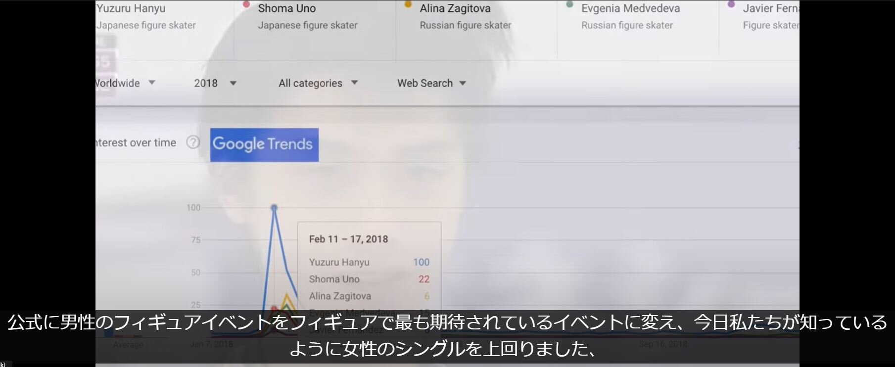 グーグルトレンドで、それまで一番人気のあった女性シングルを男性シングルが上回るきっかけとなった。
