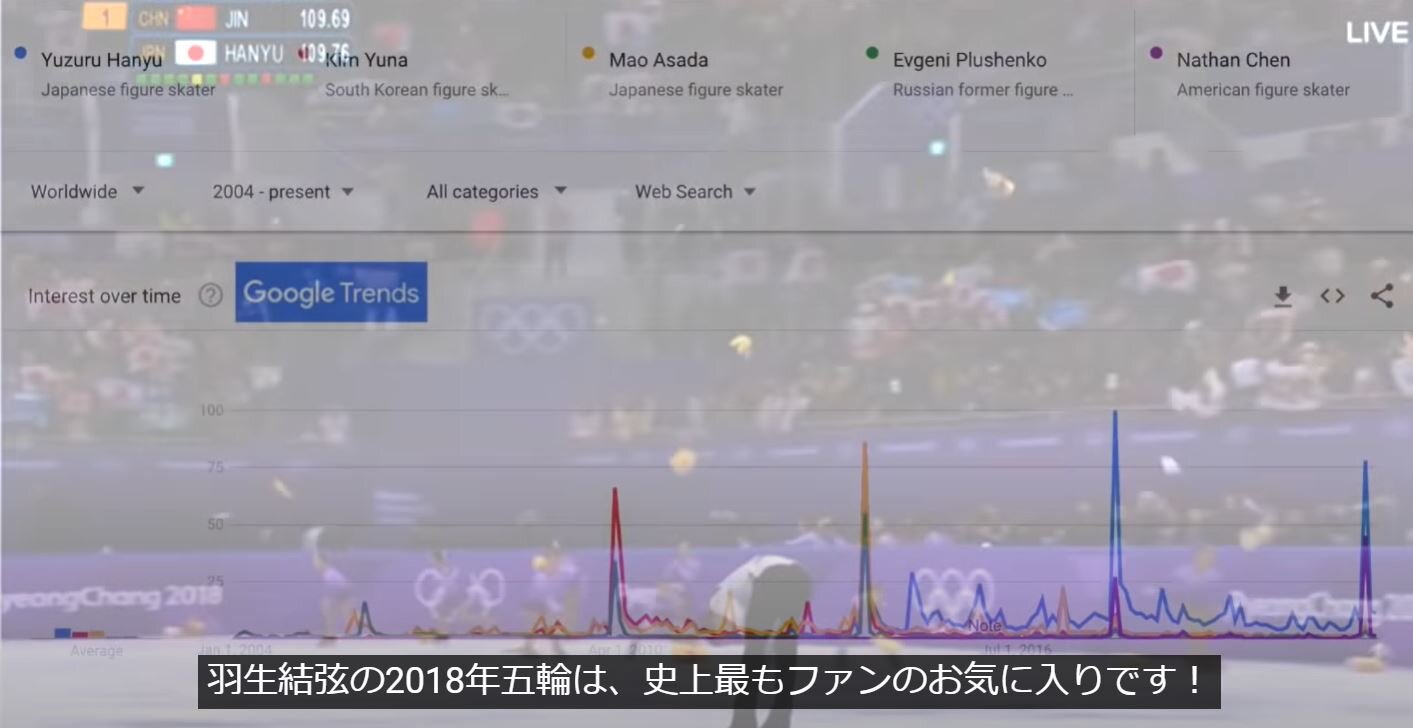 グーグルトレンドで、史上最も大きな話題となったのは平昌五輪。