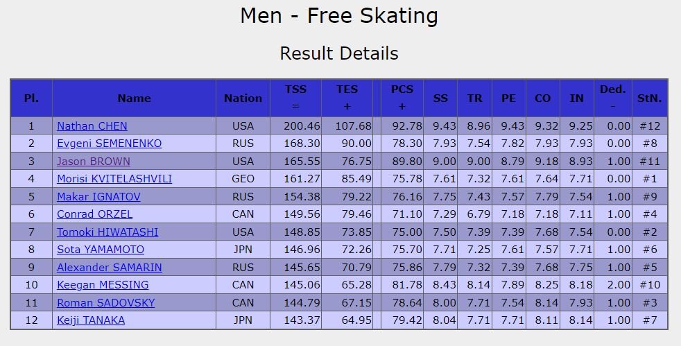 結果はISUのresultsページで競技の進行とともに自動更新されるので、私はそれで充分です。