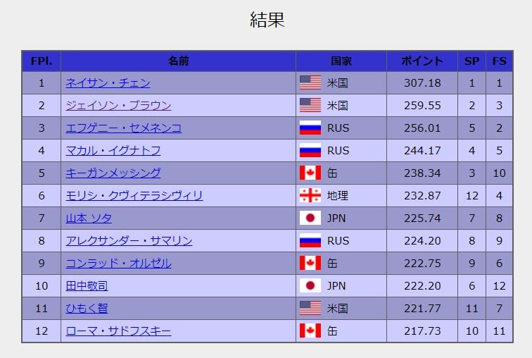 男子シングルFS結果