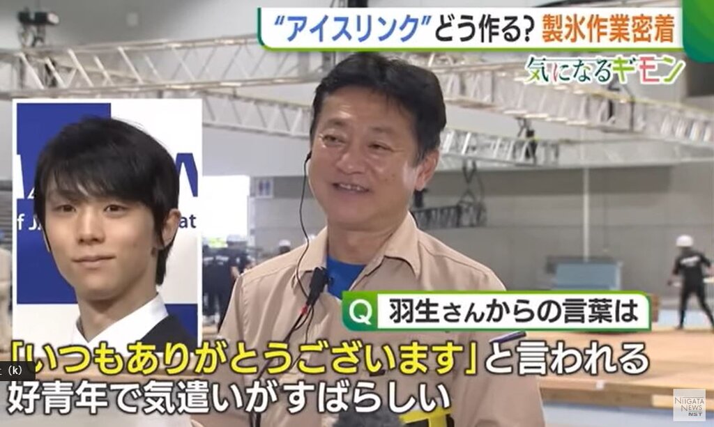 朱鷺メッセに氷を張ってリンクを造るのには4日もかかるそうです。