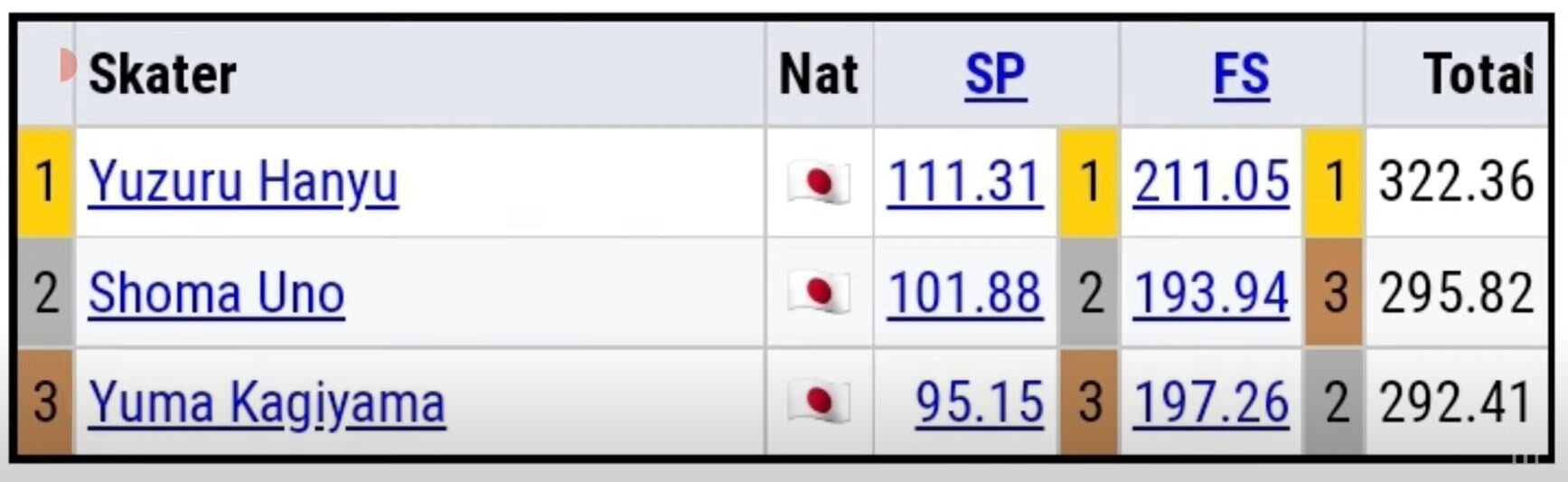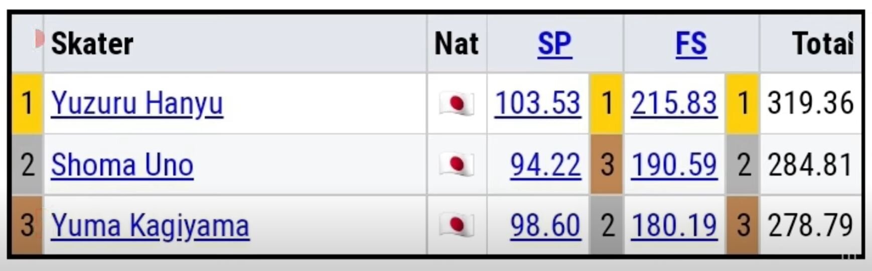 この2年の男子の順位は、羽生ー宇野ー鍵山という順位は変わっていませんが、