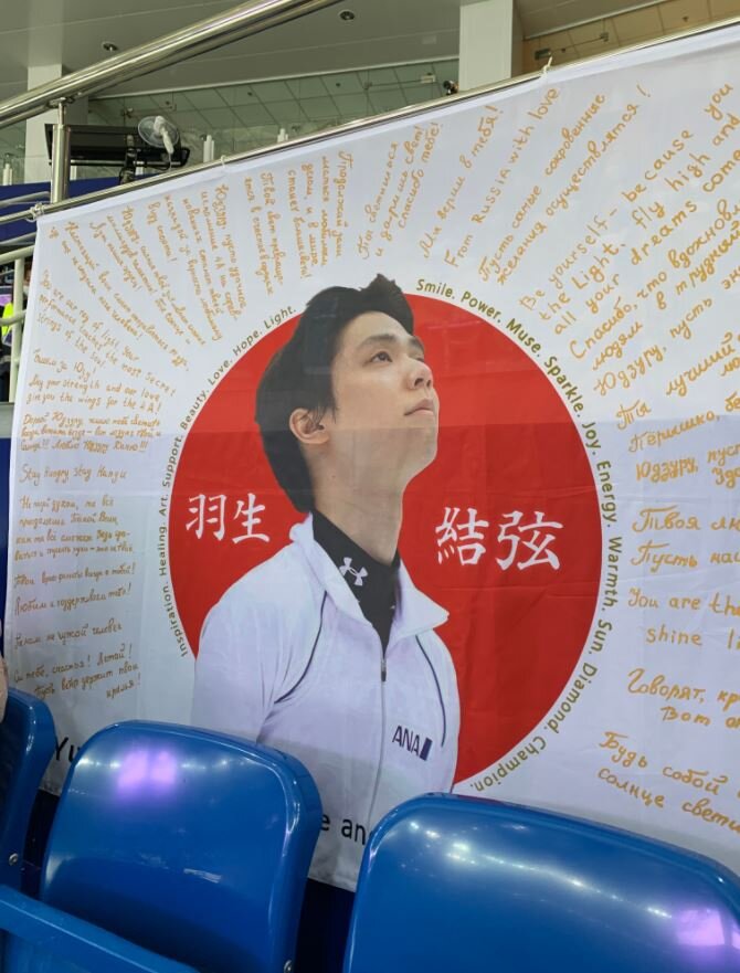 今回のロステレコムでは、そこにいたはずの結弦くんの応援をして、多くのファンが結弦くんのバナーを持参してくれたようです。