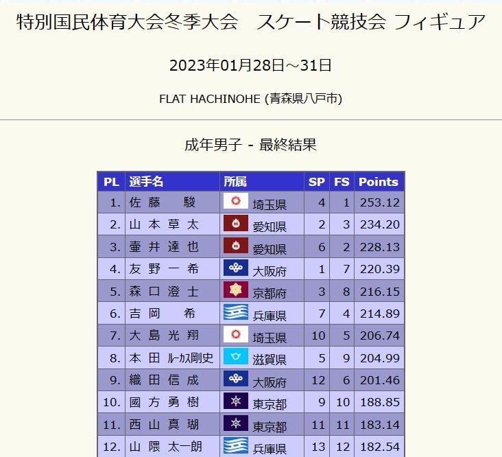 男子フリーが行われ、ショートプログラム(SP)首位の佐藤駿(フジ・コーポレーション)が4回転ジャンプ3種4本の高難度構成で全体トップの147・34点をマーク。合計229・18点で優勝し、「ひとまずショート、フリーでブロック大会より成長できている」と語った。