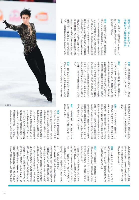 早稲田大学人間科学部のe-Stylebookに掲載された、羽生選手のインタビューを何回も読み返しました。