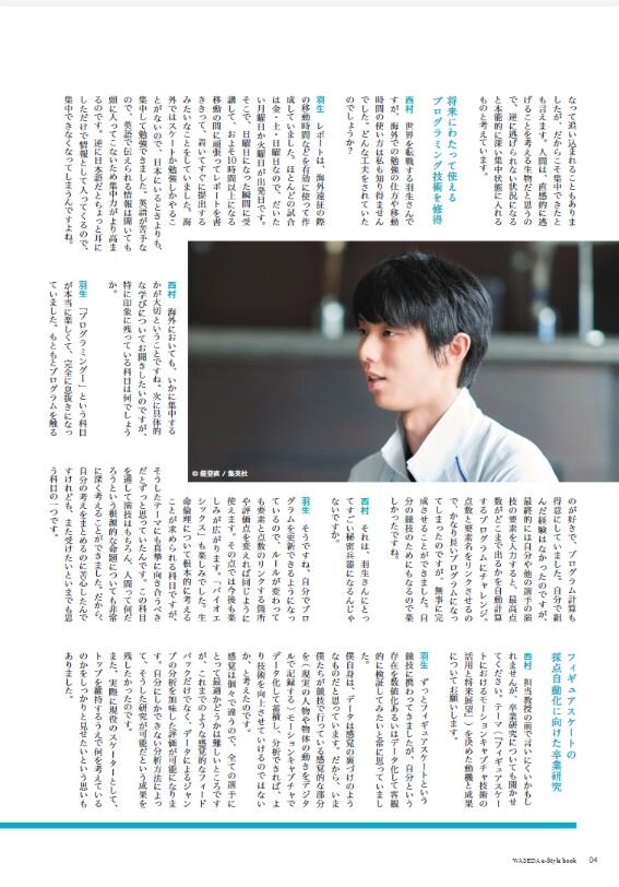 早稲田大学人間科学部人間情報科学科には、先輩である羽生選手を追うように、