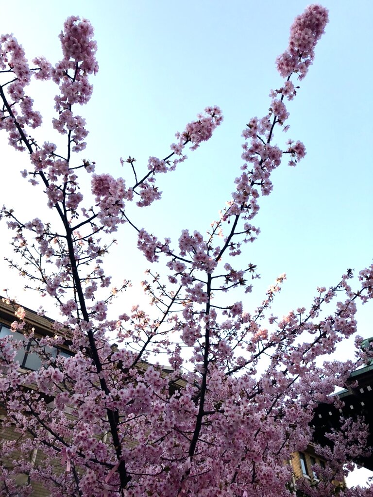 河津桜の木は2本だけですが、とても立派な木で、青空にピンクの花が美しく映え、十分春の気分を味わえました。