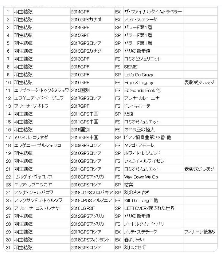羽生結弦大特集&ロシアシングルの放送リストです。