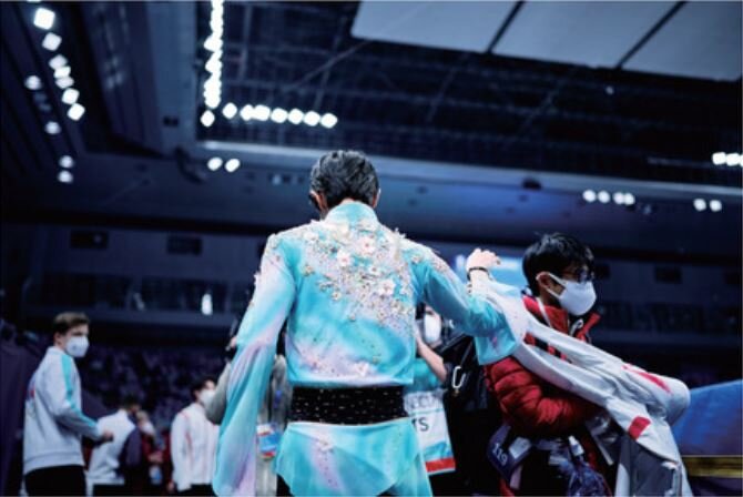 3月11日。午後1時10分に、羽生の練習が始まった。リンクインすると、イヤホンを耳にあてた。流れている曲は、羽生にしか聴こえない。何かのプログラムを滑り出した。氷とエッジがぶつかり合う音が、本番前の会場に響いた。